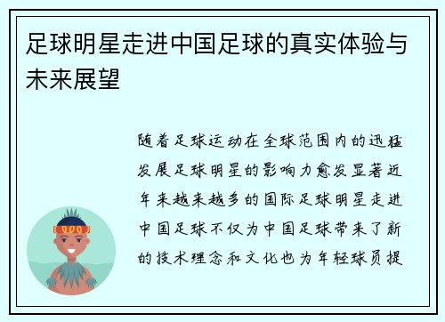 在现代足球的舞台上,明星球员不仅以卓越的技艺赢得了无数球迷的喜爱,同时他们在家庭生活中的温暖瞬间也展现了另一种魅力。本文将通过视频分享的方式,汇聚多位足球明星与儿子之间亲密互动的精彩瞬间。这些珍贵的画面不仅展现了父子的深厚情感,也传递出家庭温暖和快乐的重要性。从日常训练中的亲密指导,到赛场外的轻松玩耍,再到节日庆祝时刻的欢声笑语,足球明星与孩子们之间那份纯真的情谊令人动容。接下来,我们将从四个方面...